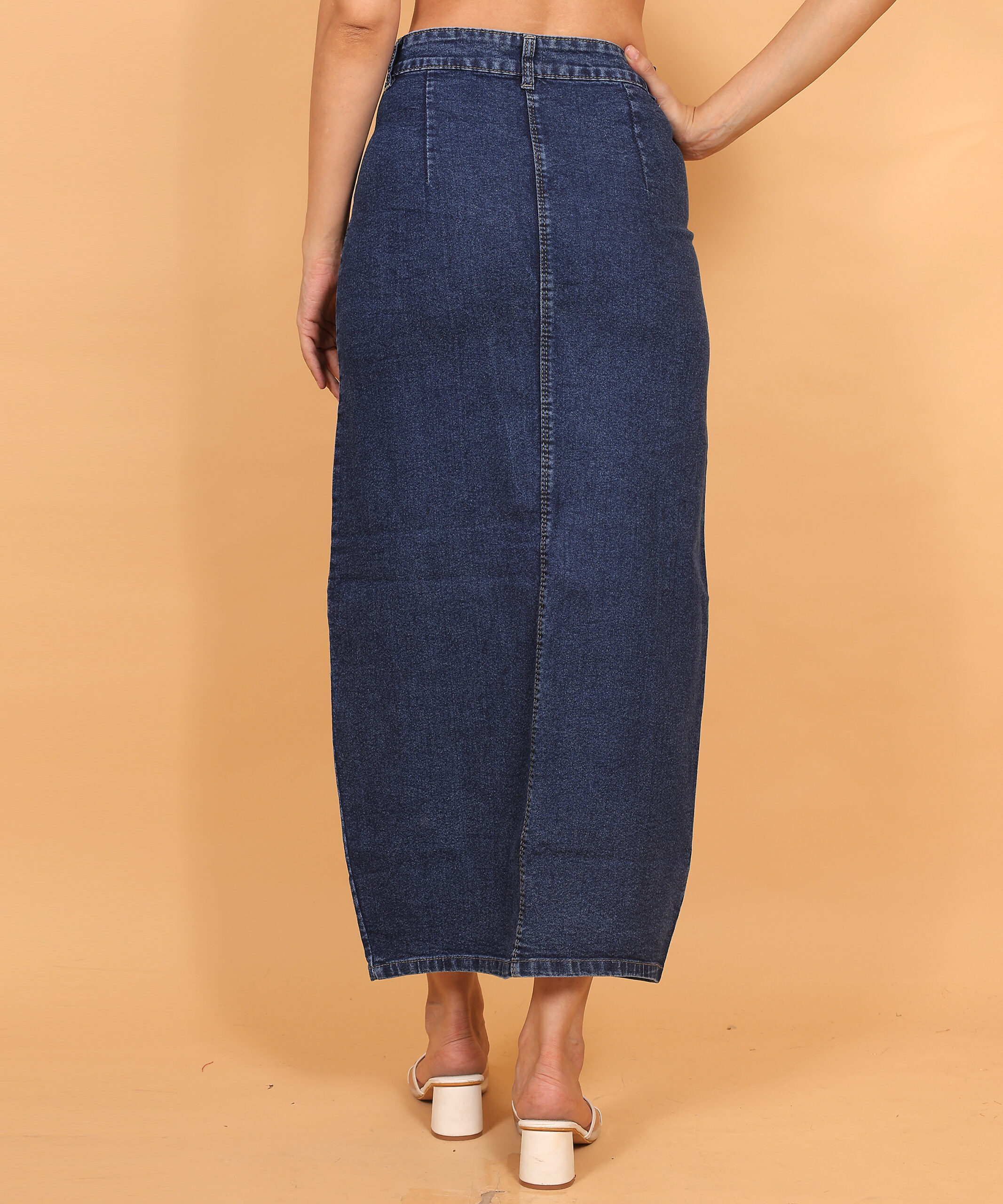 Denim Panelled Midi Skirt, Navy Blue